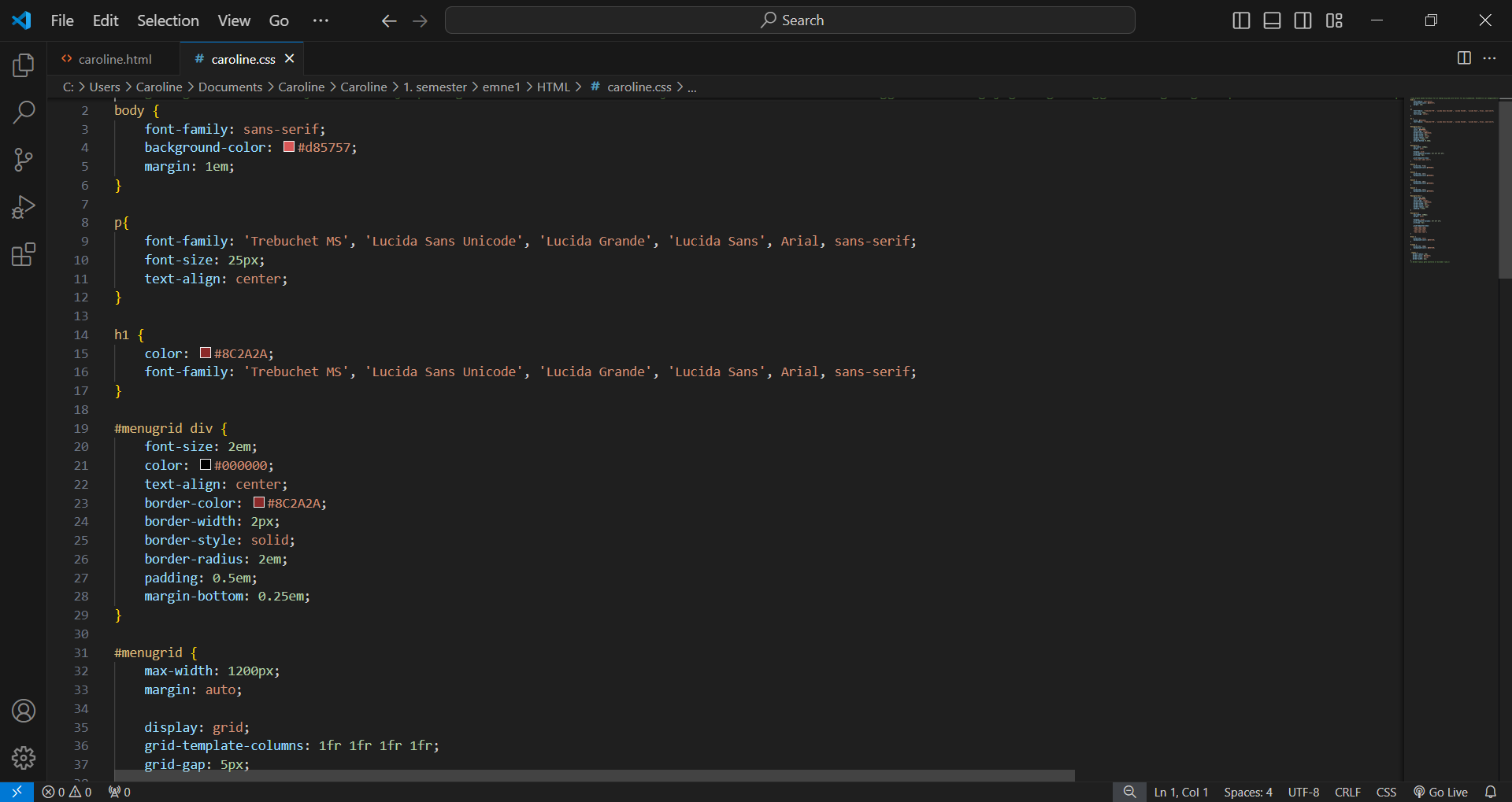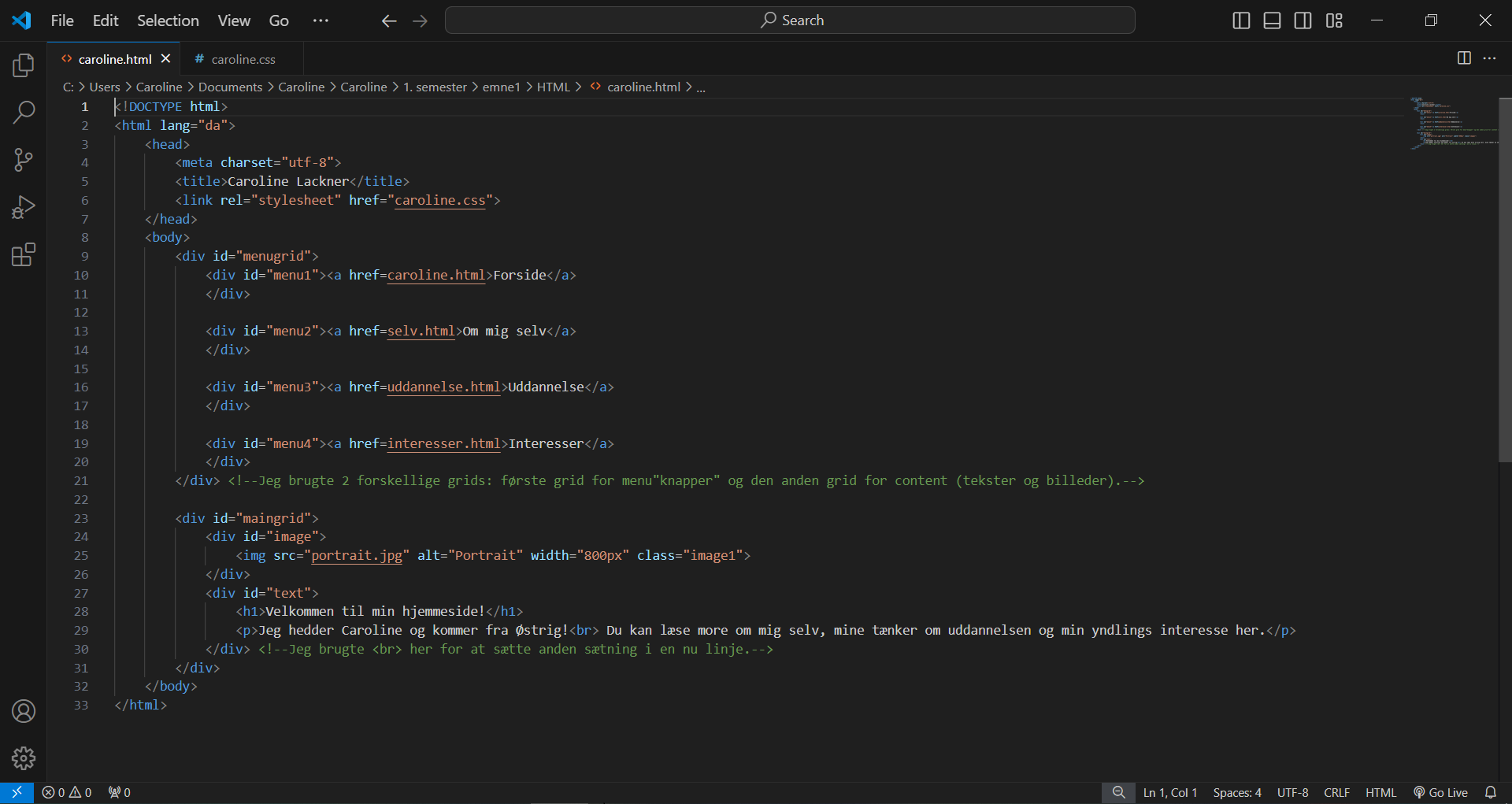 Mit første projekt var at bygge en hjemmeside med hvad jeg har lært af HTML og CSS.