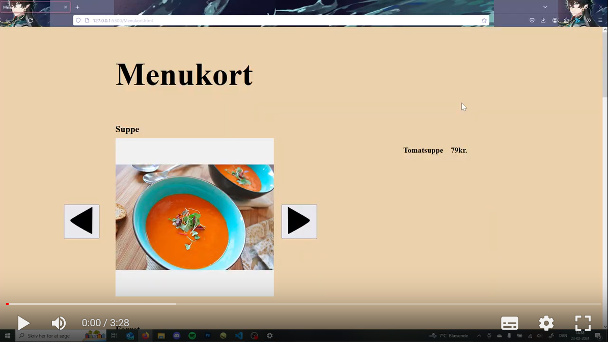 I vores vinterferie lærte vi hvordan man kan bruge Javascript. Efter vi kom tilbage til skolen var vores første opgave at bygge en interaktiv “konfigurator”. I mit gruppe valgte vi at bygge en menukort.